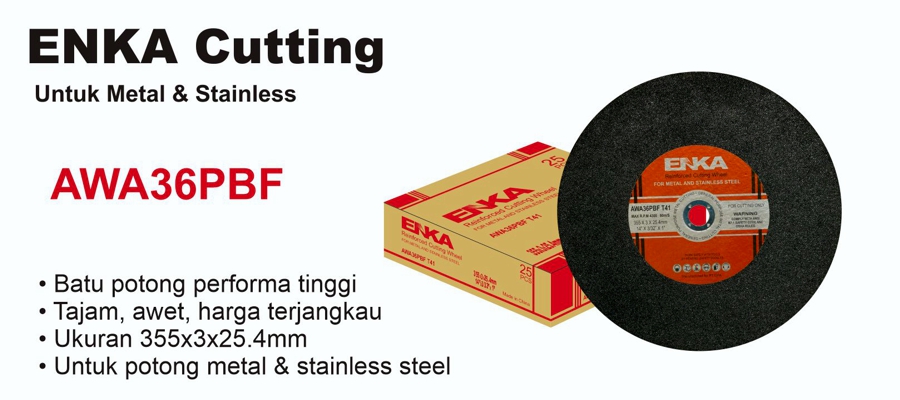 ENKA AWA36PBF2 14 Inch adalah cutting wheel yang banyak digunakan di work shop / bengkel las untuk memotong pipa-pipa hollow dan plate STAINLESS. Batu potong ini sangat tajam dan tahan lama.