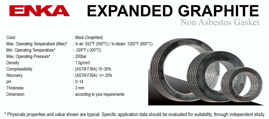 ENKA EXPANDED GRAPHITE is made from pure graphite without additives or binders. The graphite is compressed without the use of adhesives. A superior replacement for asbestos gasket. Graphite sheet is highly chemical resistant and thermally stable.